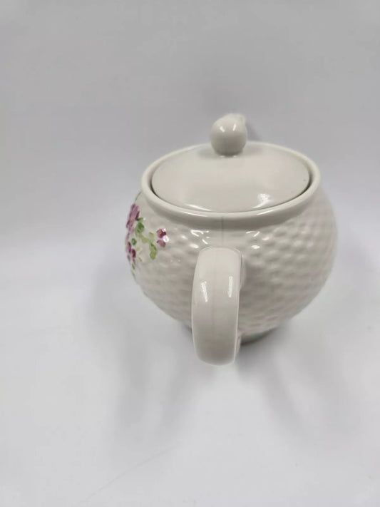 Vintage A Teleflora Gift 1985 Basket Weave Ceramic Tea Pot Pink Floral