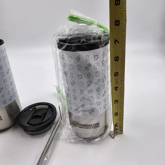 Herbalife Nutrition 2 Piece Stainless Steel Tumbler Set w/ Straw 16 oz Brand New