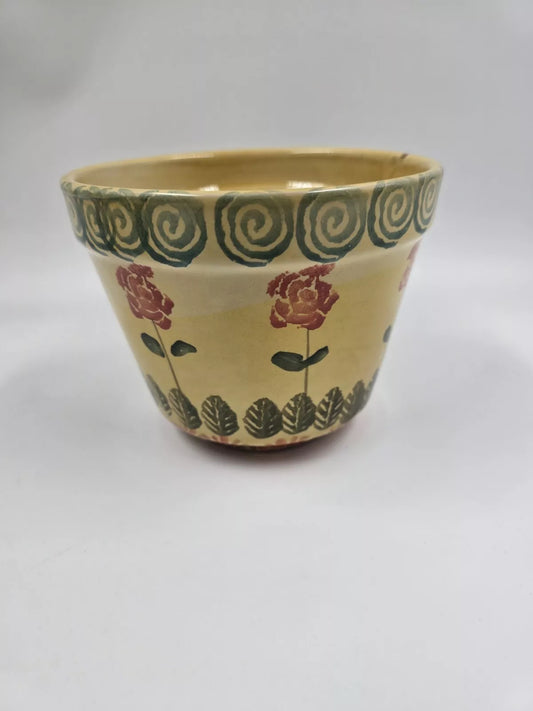 Vintage Italica Ars Hand Painted Italy Planter Pot Floral Yellow